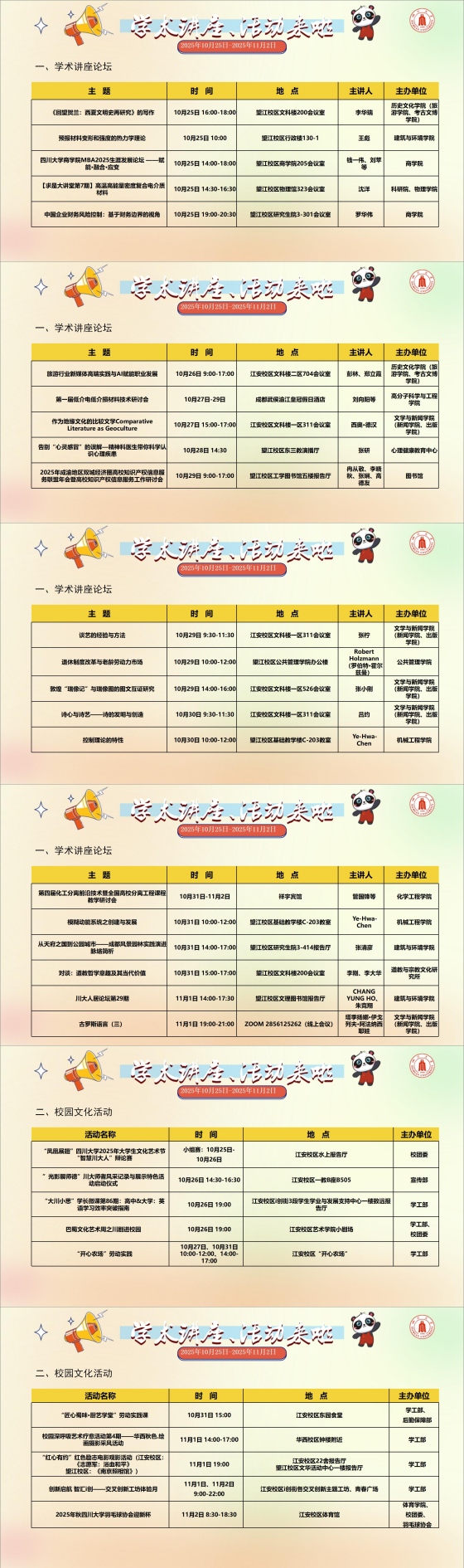 讲座和校园文化活动预告(2025年10月25日-2025年11月2日)